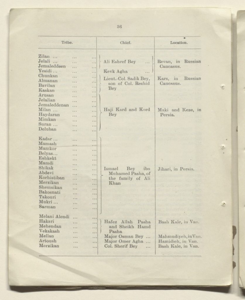 Gönderilen bir başka belgede ise “Tribe / Chief / Location” başlıklı listede Zilan adı yeniden görülmektedir. Bu belge, Zilan adının yalnızca tek bir döneme ya da tek bir kaynağa ait olmadığını; farklı kaynaklarda da tekrarlandığını göstermesi bakımından değerlidir.
